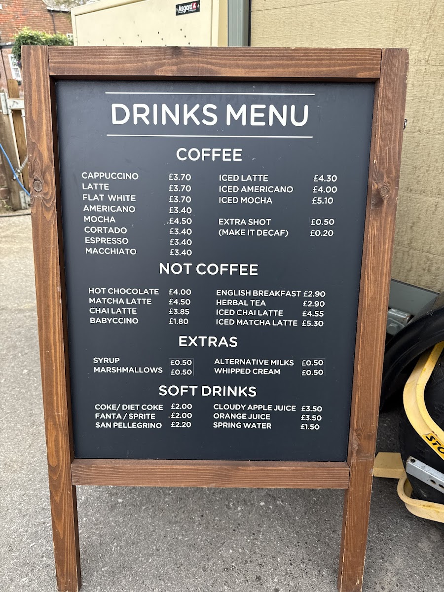 The menu complements the casual, welcoming atmosphere of the spot—a perfect fit for cyclists and locals looking to unwind with a familiar drink or a comforting sweet treat. Extras like alternative milks, syrups, and whipped cream allow for small personal touches to your order, making each visit feel just a little more tailored to your taste.